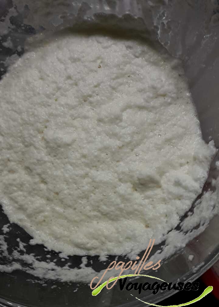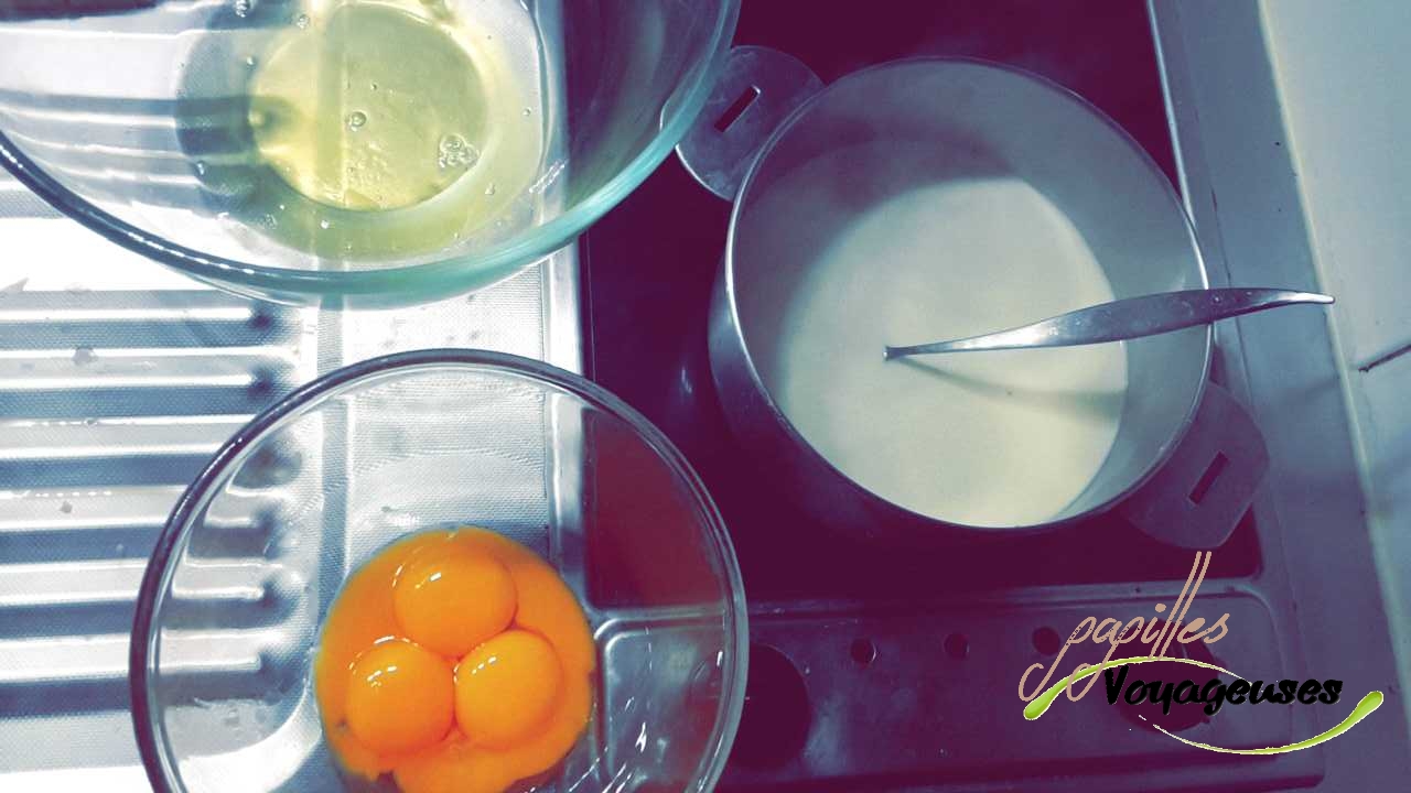 • Séparer les blancs des jaunes, et monter les blancs en neige jusqu’à ce qu’ils soit bien ferme! (environs 5mn => on peut également ajouter quelques gouttes de citron pour qu’ils soient fermes)