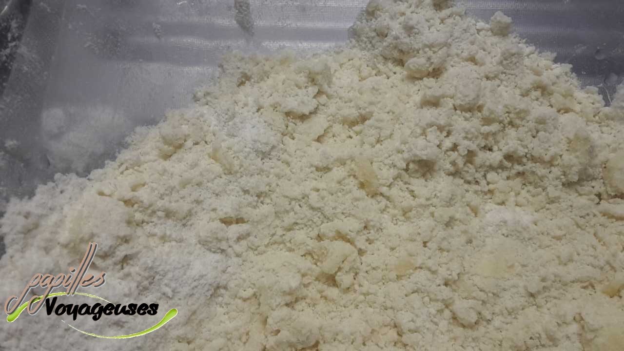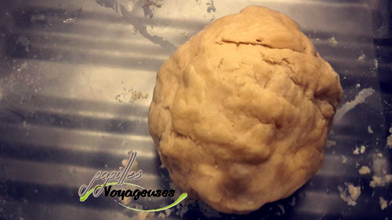 2. Confectionner la pâte: mélanger la farine puis le sucre, ajouter le beurre mou et le jaune d’œuf. Bien malaxer la pâte, d’abord en petites miettes pour bien incorporer le beurre, puis en grosse boule.