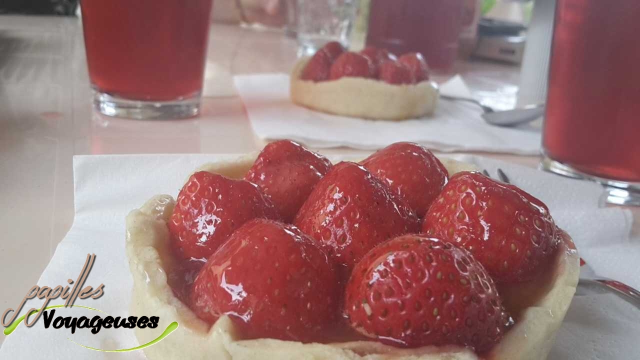 Le citron est de la crème citron, comme sur la tarte au citron meringuée. J’ai également fait un sirop de sucre afin de rendre mes fraises bien brillante.