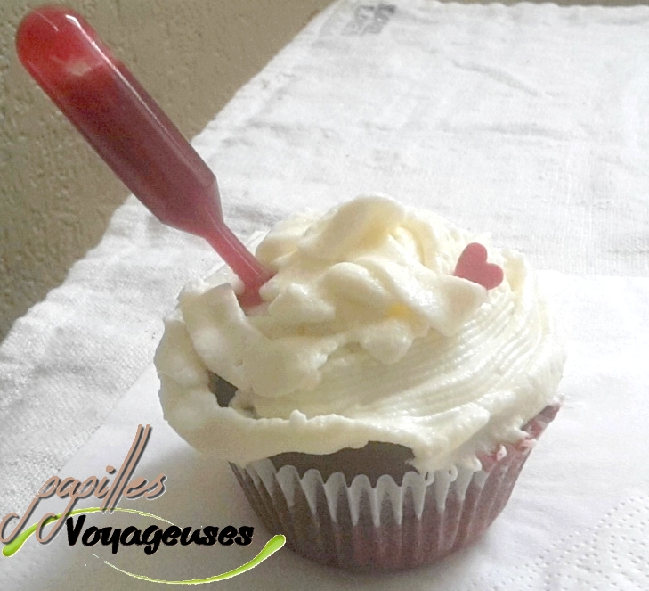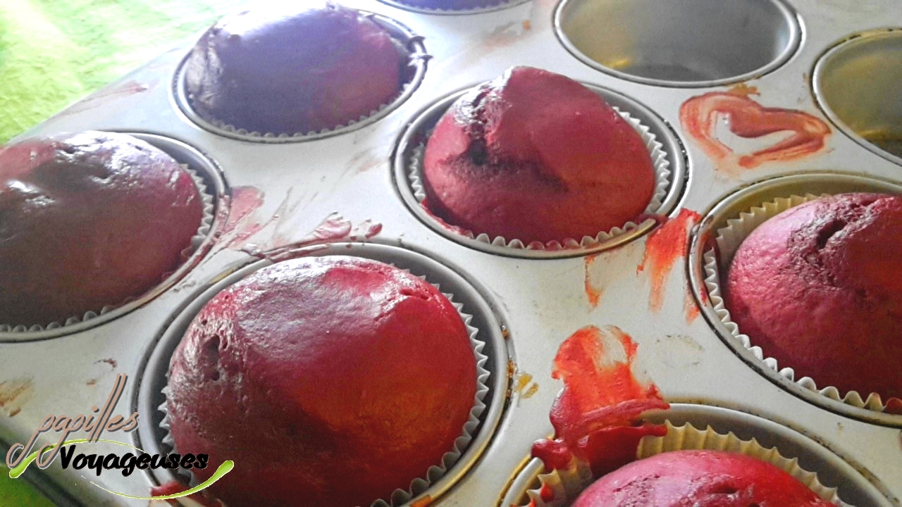 C’est un Cupcake légèrement chocolaté caractérisé par son coté « rouge velours » (= Red Velvet). Cependant il peut également être fait sous forme de gros gâteau à étage!