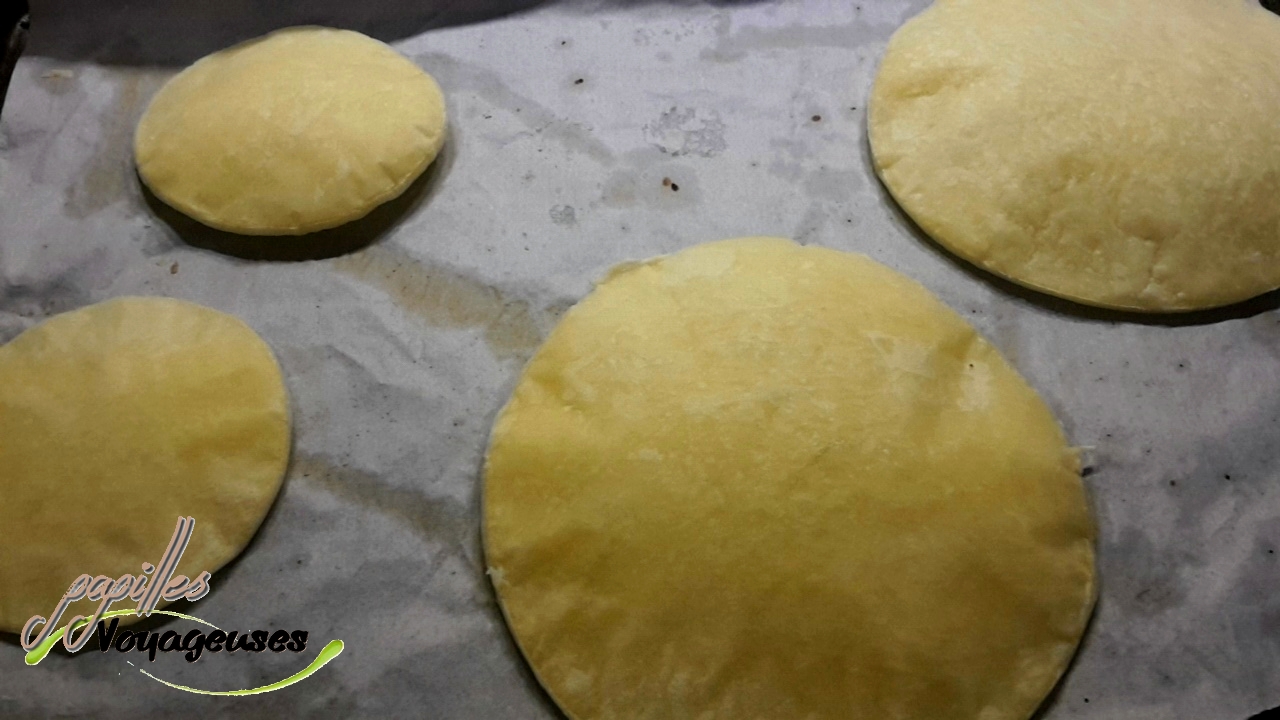 - Si possible, badigeonner les cercles d’un peu de jaune d’œuf, sinon enfourner sans jusqu’à ce que la pâte soit légèrement colorée.