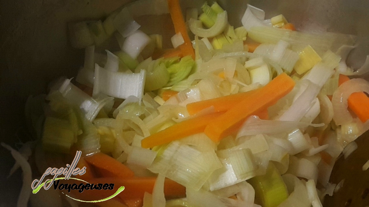 - Couper en lamelles les oignons, les carottes et le poireau.