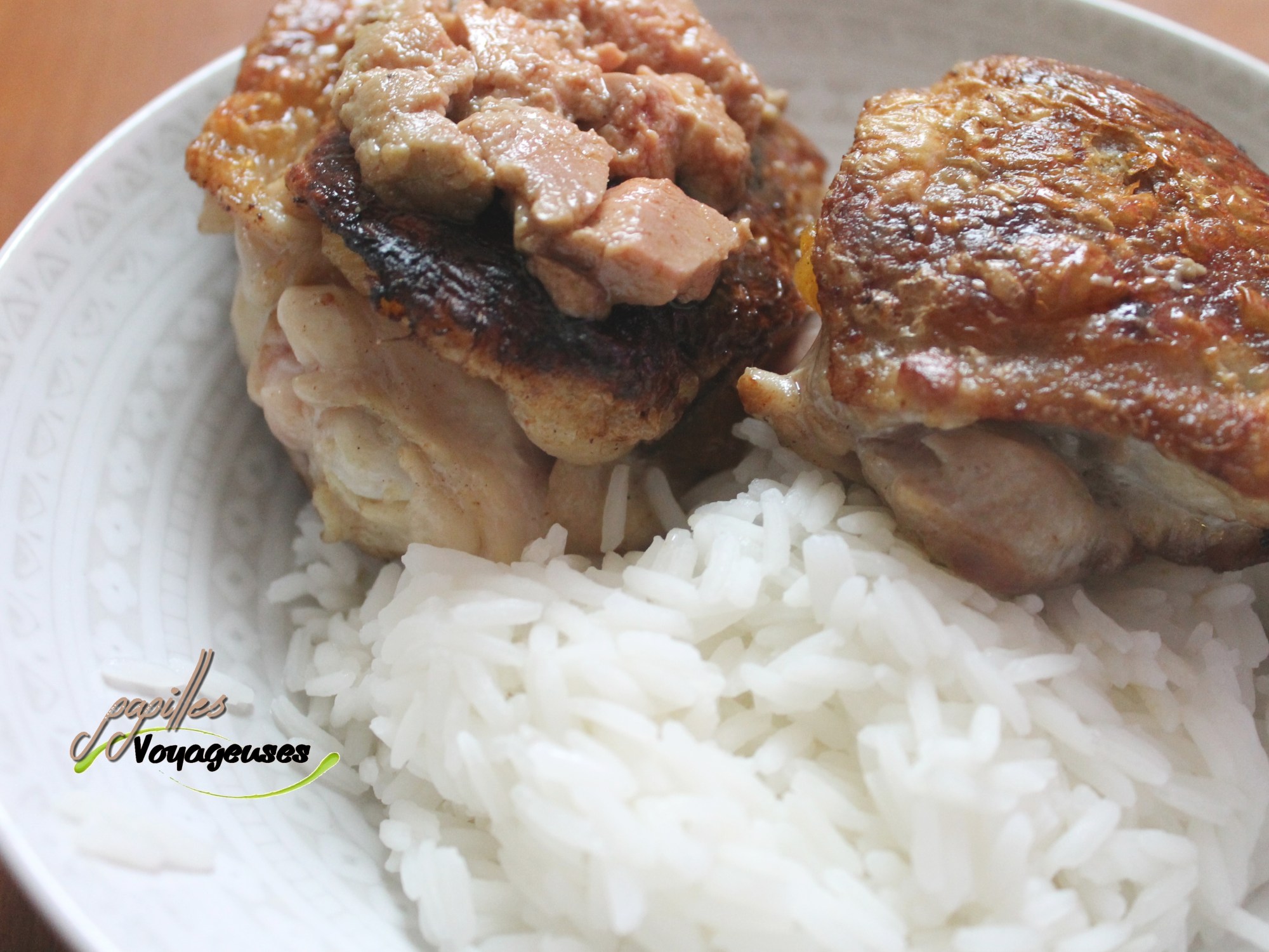 - Une fois que le poulet est cuit, l’enlever de la poêle et déposer vos rondelles de foie gras. Laisser 1mn puis retirer délicatement et déposer dans votre assiette, sur le poulet. A déguster chaud!