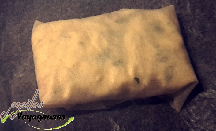 - Prendre votre pavé de saumon, enlever la peau si elle est présente puis le poser sur une feuille de brick. Tartiner votre pavé de saumon d’une belle cuillère à soupe du mélange brousse/menthe puis refermer la feuille de brick.