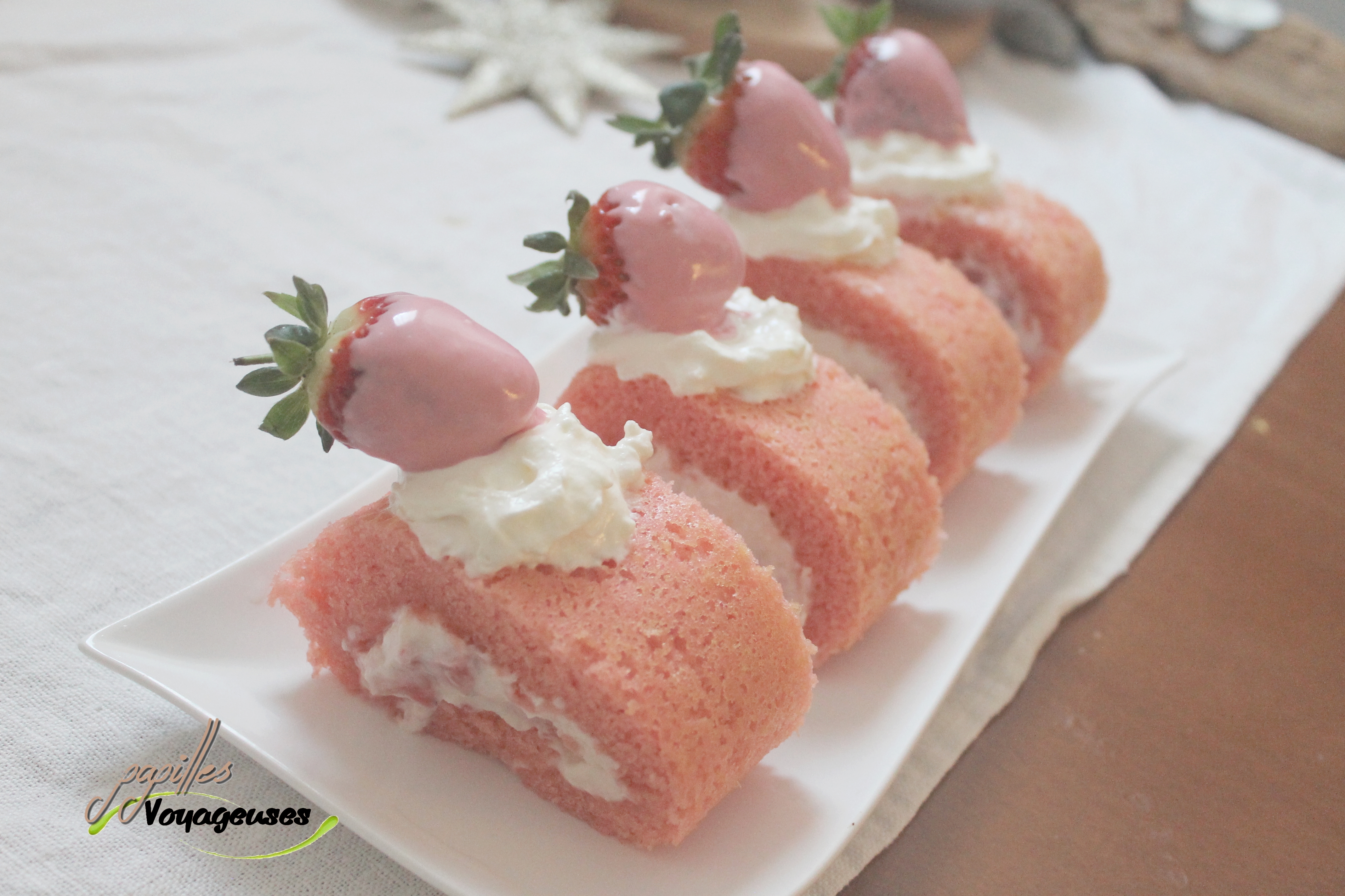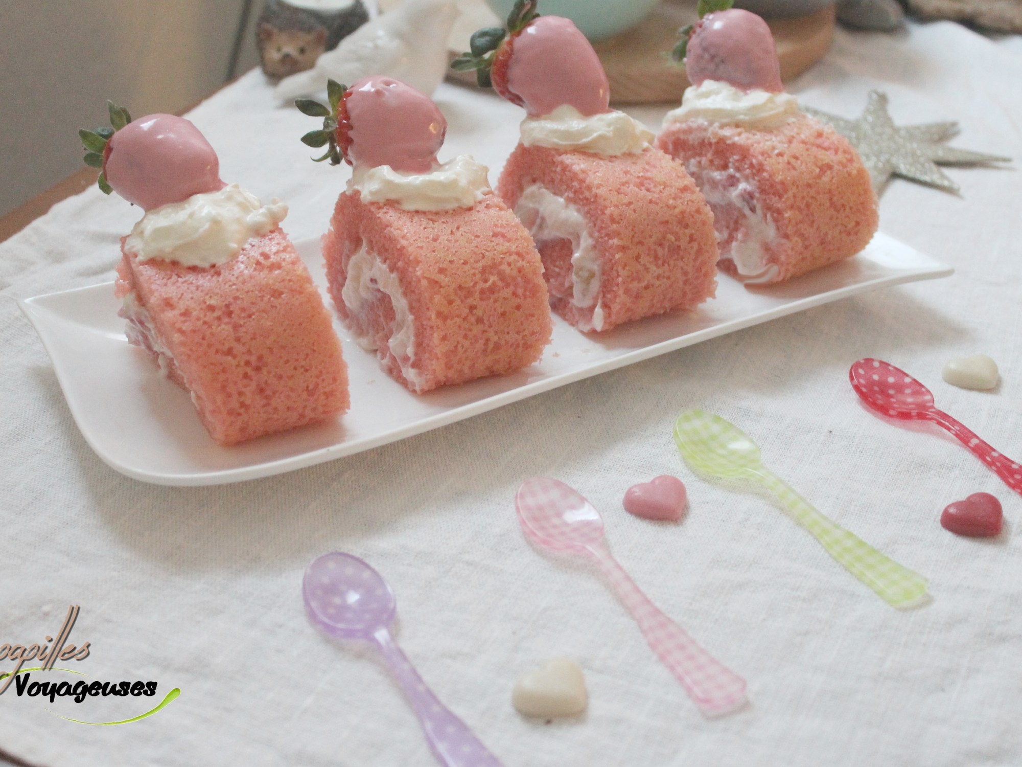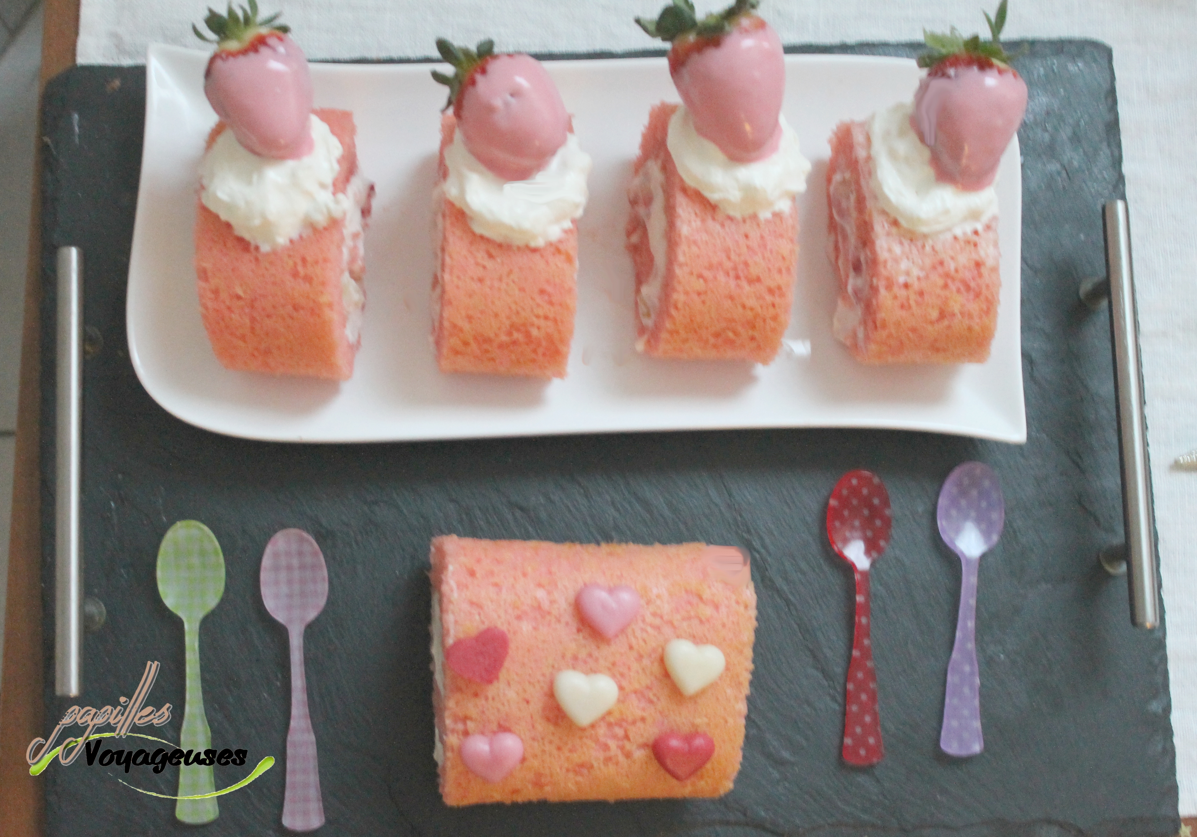 - Faire le roulé: battre les œufs avec le sucre puis ajouter le beurre, la farine avec la levure et enfin quelques gouttes de colorant rouge jusqu’à l’obtention d’une pâte rose pale (attention, le rose part légèrement à la cuisson). Mélanger bien le tout, puis, disposer une feuille de cuisson sur une grande plaque et faites couler votre pâte. Aplanir avec un couteau ou une spatule pour un gâteau de taille uniforme. Mettre au four 10mn à 180°.