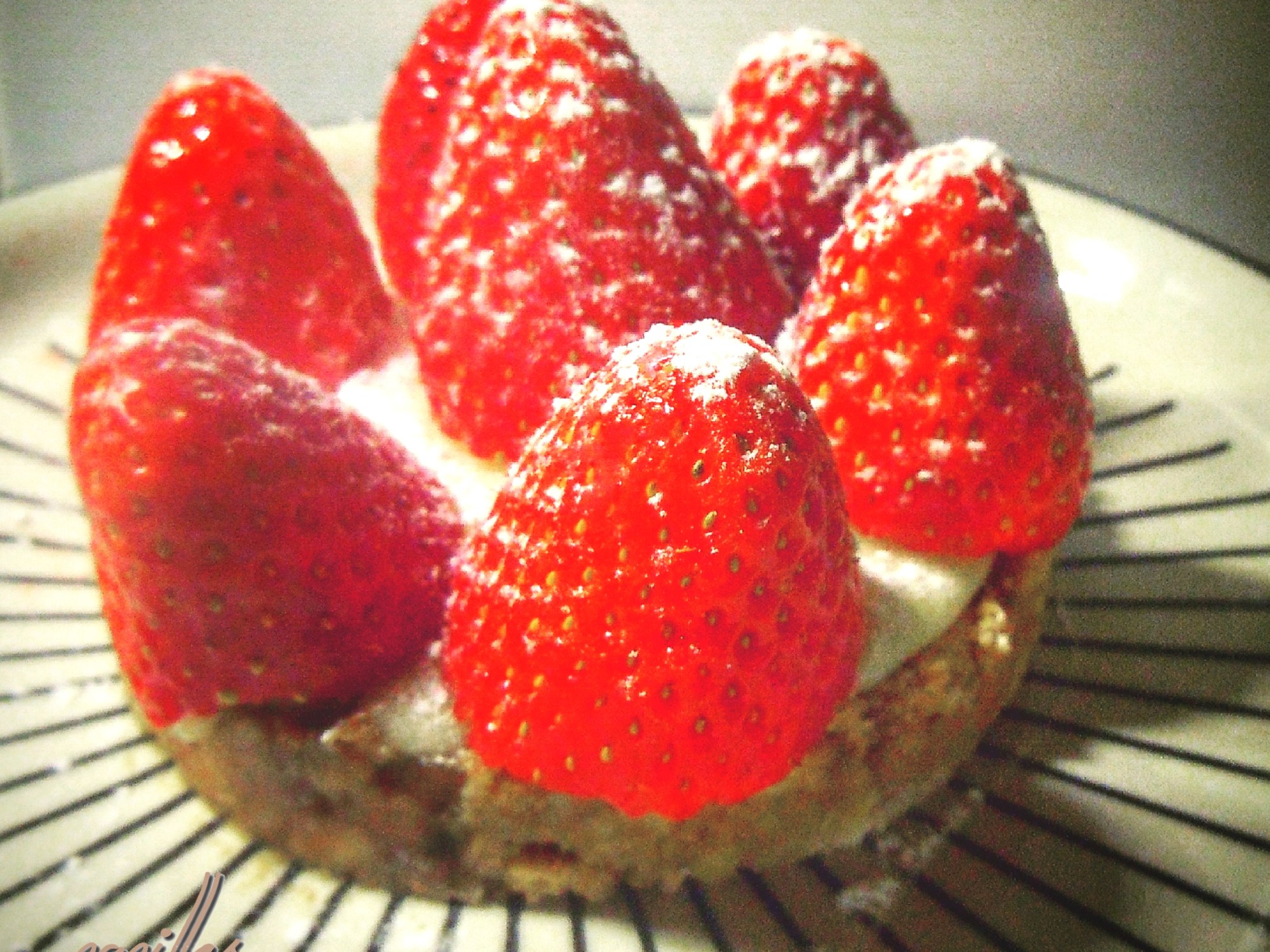 - Pour finir, disposer vos fraises équeutées sur vos tartelettes et terminer avec un peu de sucre glace!