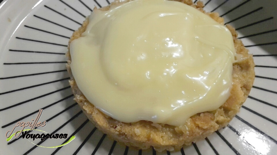 - Verser cette pâte dans vos assiettes de service (donc si vous voulez faire deux petites tartelettes, diviser la pâte en deux et repartir sur deux assiettes), puis former cette pâte pour qu’elle fasse votre fond de tarte. Il faut qu’elle soit d’environ 1,5cm d’épaisseur. Personnellement, j’ai utilisé un emporte-pièce pour qu’elle soit bien ronde.