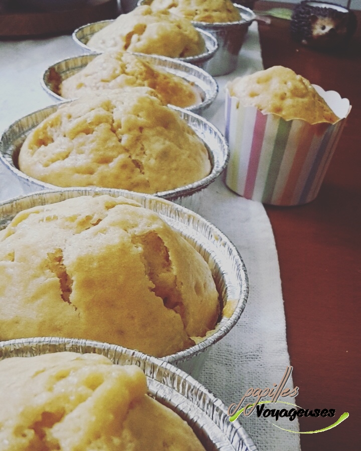 - Verser dans les moules à muffins (remplir au 3/4 car ils gonflent!).