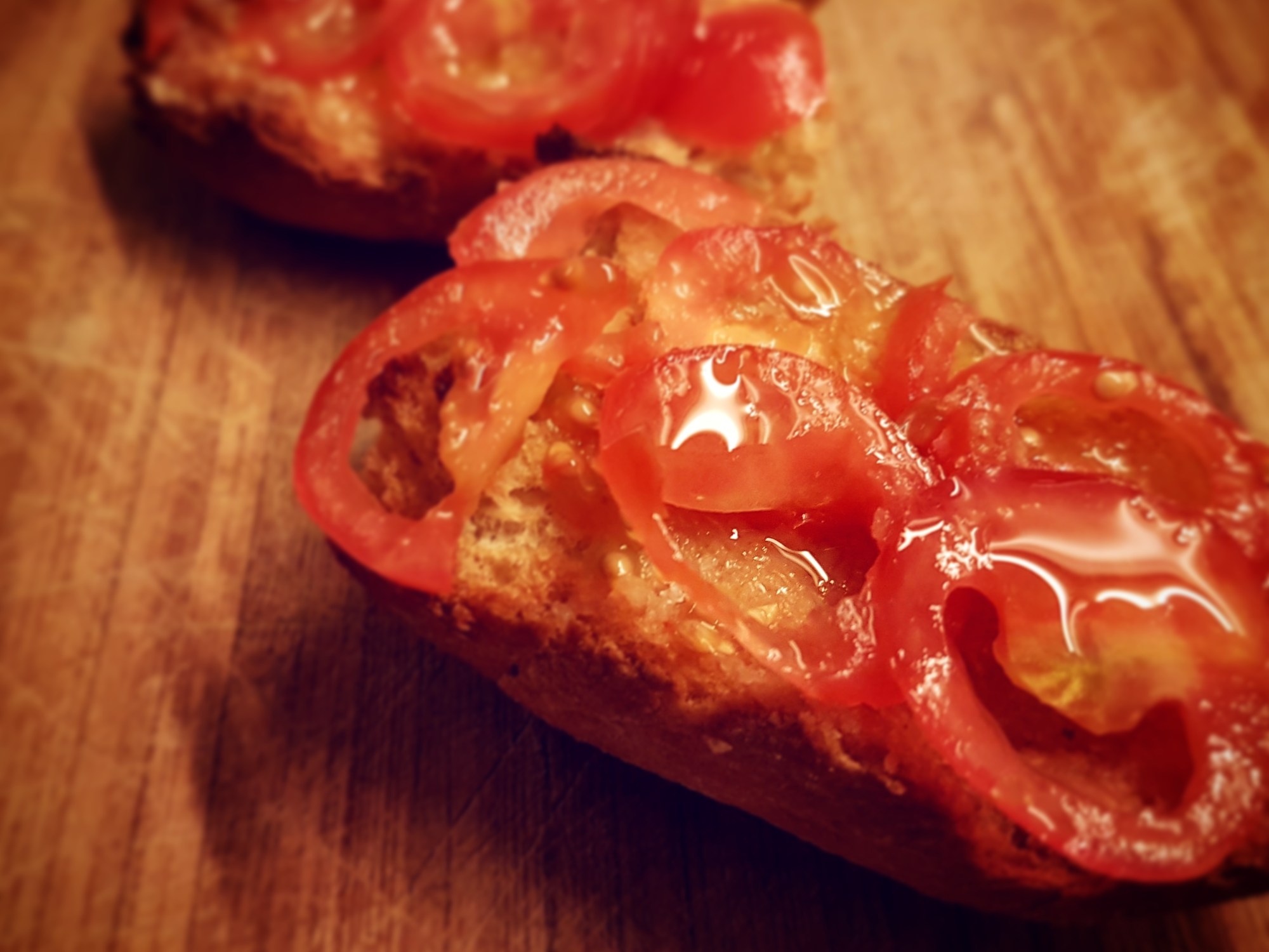 - Déposer les pépins et le jus des tomates sur vos tartines, puis les rondelles harmonieusement.