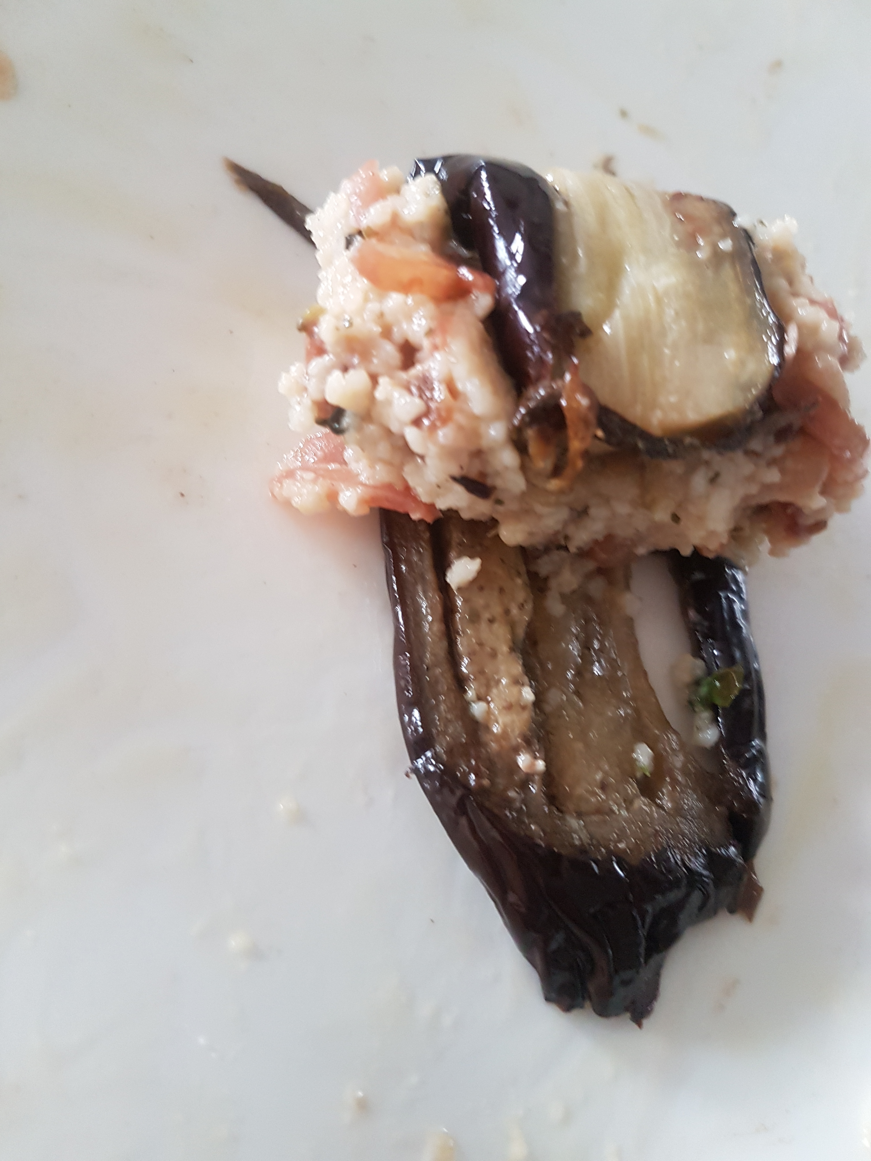 La recette de mes aubergines originales roulées à la semoule et aux fruits secs