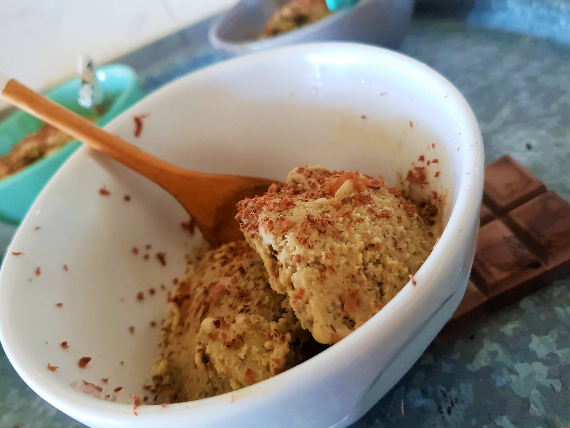 Ma recette de la glace au thé matcha et aux pépites de chocolats allégée sans glacière