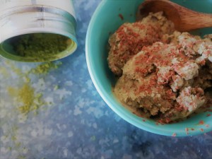 - 1 cuillère à soupe rase de thé matcha en poudre (se trouve en rayon bio également ou en boutique bio)