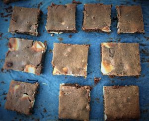 - Étaler la préparation sur une plaque de four recouverte d’un papier sulfurisé et enfourner jusqu’à ce que les bords se colorent très légèrement. Il vaut mieux peu cuire votre fondant et le remettre un peu au four ensuite que de trop le cuire! Se mange aussi bien chaud que froid, et se conserve à l’abri pendant environ 1 semaine.