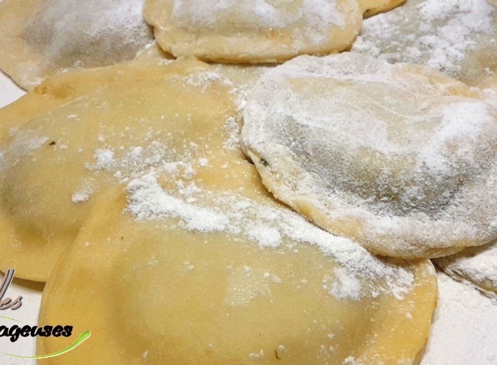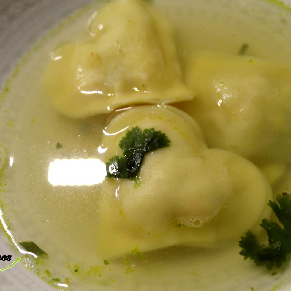 Raviolis en forme de cœur à la crevette et son infusion au gingembre